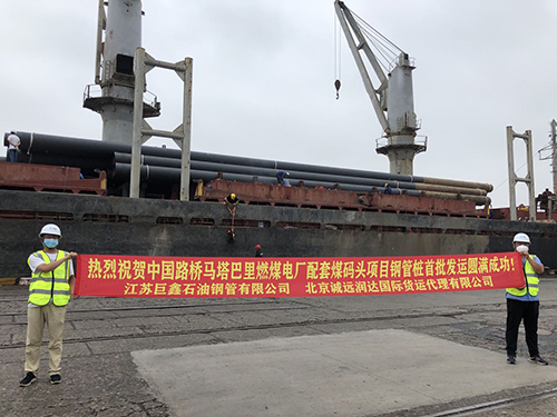 2020年6月2日,在江蘇巨鑫石油鋼管有限公司海工基地碼頭,由巨鑫鋼管為中國路橋工程有限責(zé)任公司孟加拉蒙塔巴瑞電廠碼頭項目制造的首批118支鋼管樁,在專業(yè)工程物流北京誠遠潤達國際貨運代理有限公司的承運下順利發(fā)運。
