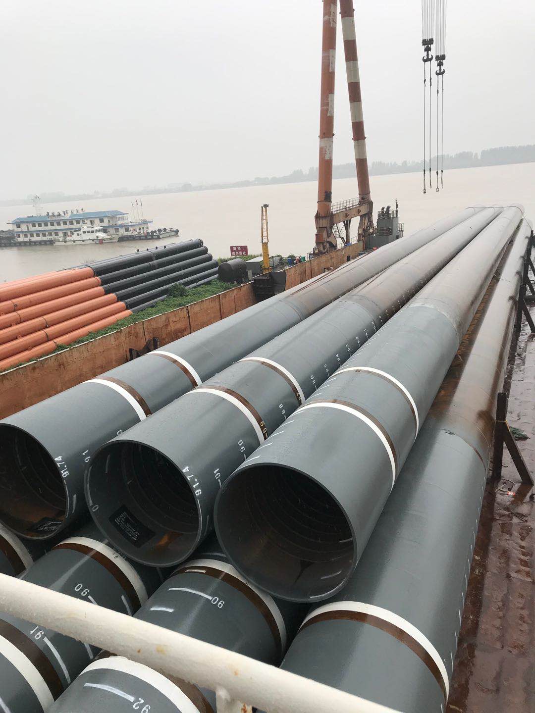 巨鑫鋼管車(chē)間內(nèi)廣州打撈局中節(jié)能、三峽海上風(fēng)電原材料整齊劃一