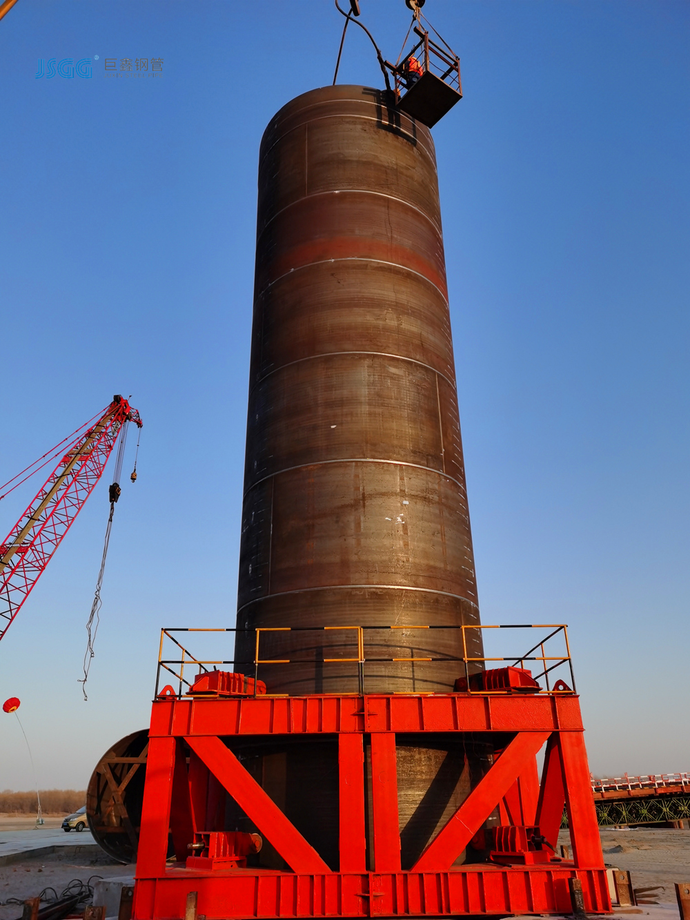 中鐵大橋局巢馬城際鐵路先行工程鋼護筒項目,規(guī)格為φ4444*22-32*17米36支,4456*28-40*46米60支,材質為Q345B,單支最長46米。由于工期短、時間緊,12月29日材料進場,甲方要求1月8日確保發(fā)運,公司即刻安排生產,員工冒著揚州60年未遇的嚴寒,在零下-12℃的惡劣條件下,元旦加班加點,保質保量按期完成首批4支鋼管的制作,并連夜裝船,順利發(fā)運,確保項目部如期開工。我司已有多年大口徑鋼管樁的生產經驗,生產工藝技術非常成熟,生產員工也有豐富的實際工作經驗。