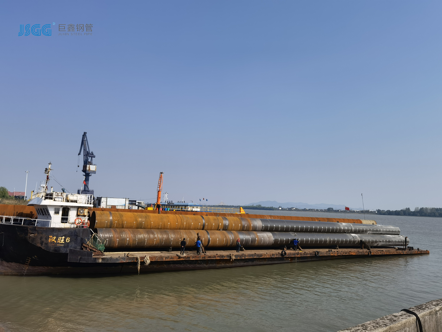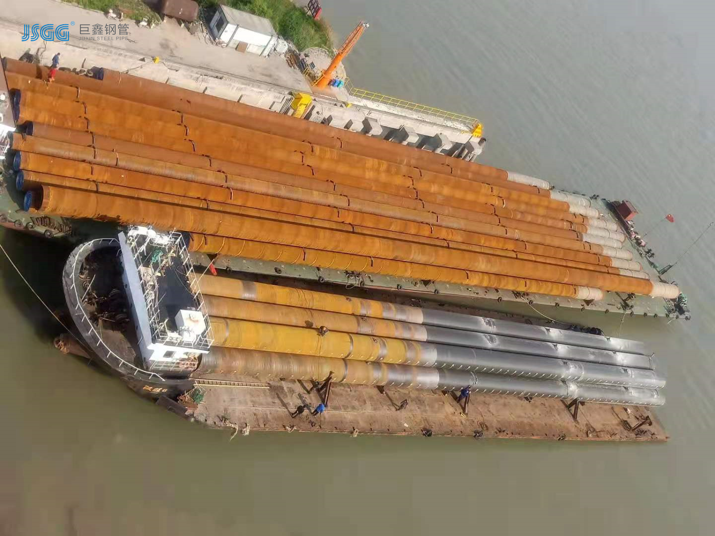 江蘇巨鑫鋼管海工基地發(fā)運中交四航局廣東石化碼頭鋼管現(xiàn)場一