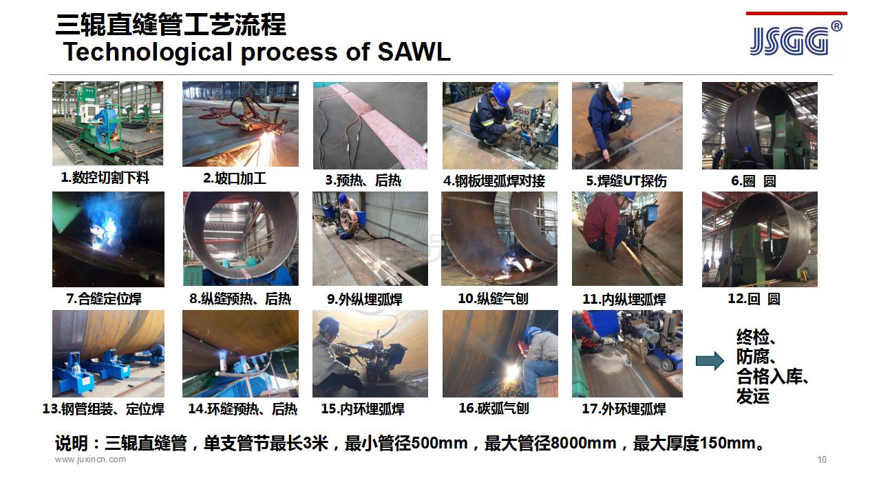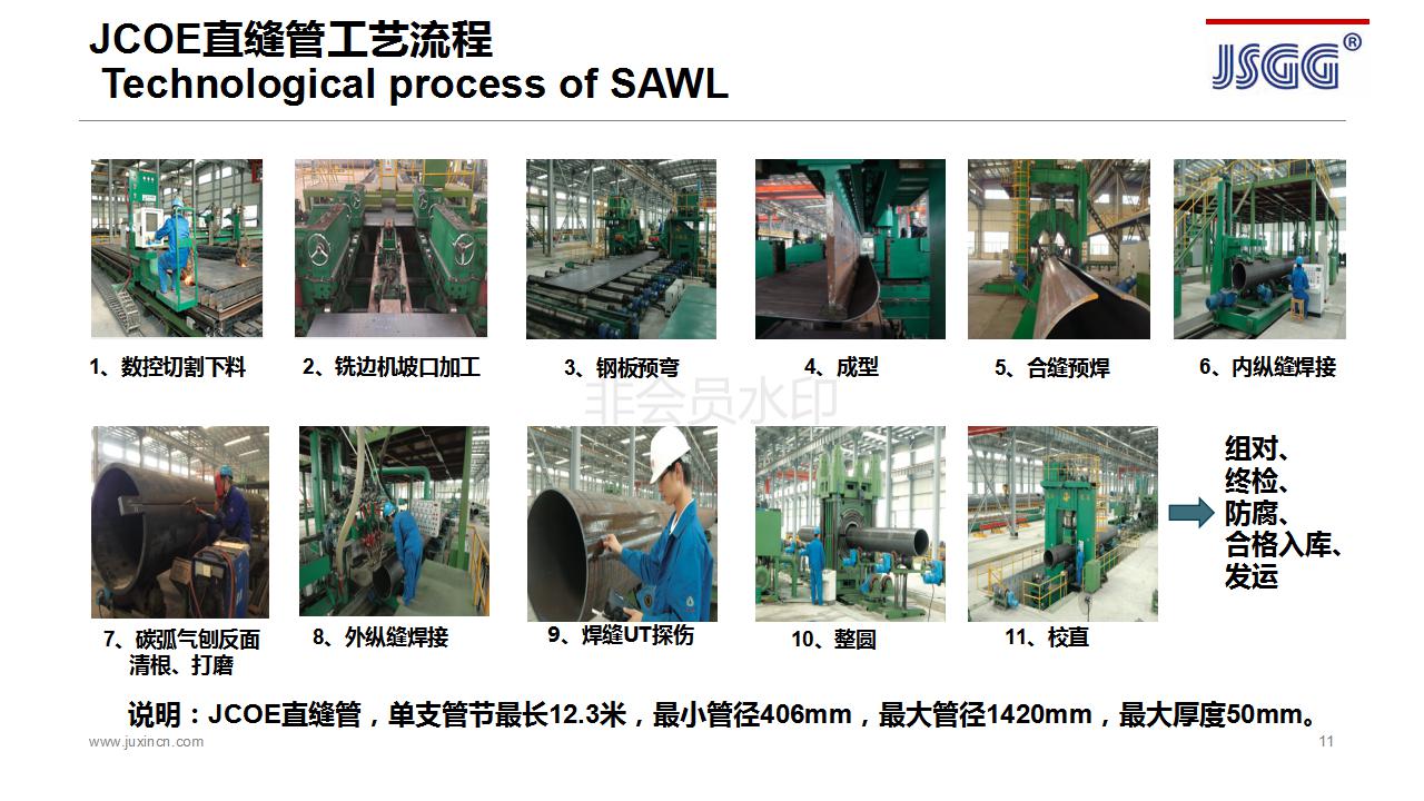 江蘇巨鑫石油鋼管有限公司坐落于風景秀麗的古城揚州,現(xiàn)有1條國內(nèi)領(lǐng)先水平JCOE直縫雙面埋弧焊管生產(chǎn)線,5套三輥鋼板卷制成型直縫雙面埋弧焊管生產(chǎn)設(shè)備,4條螺旋縫雙面埋弧焊管生產(chǎn)線,年設(shè)計生產(chǎn)能力達40萬噸。可批量供應(yīng)φ219~φ7000mm,壁厚為4mm~150mm,單位長度1.5m-120m的焊管,并可配套供應(yīng)各種鋼管管件及各種形式的防腐鋼管,產(chǎn)品廣泛應(yīng)用于碼頭及橋梁樁基、航道疏浚、海上風電、高鐵和地鐵深基礎(chǔ)、城市管網(wǎng)、鋼結(jié)構(gòu)、特高壓輸電網(wǎng)等領(lǐng)域。