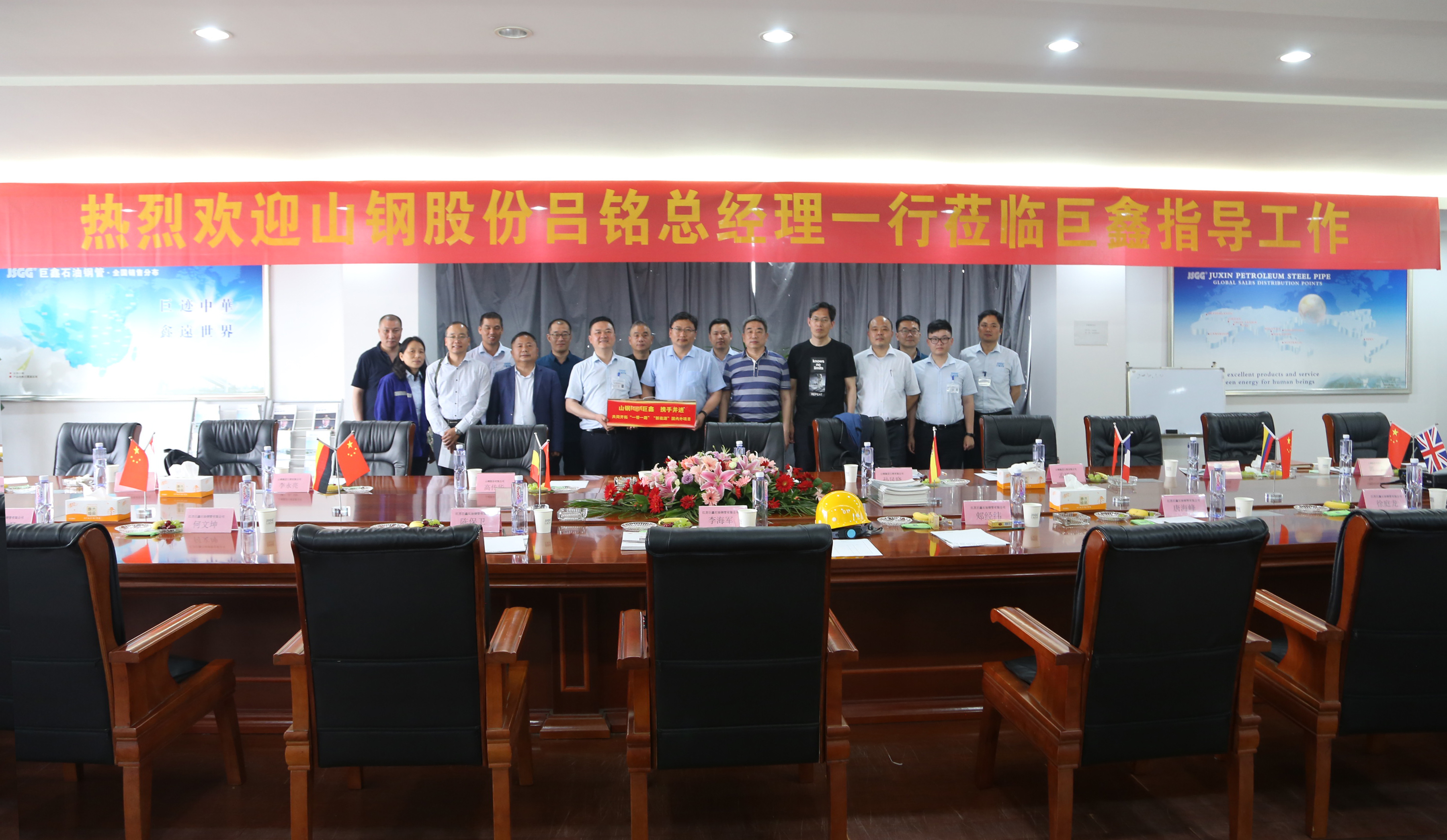 2020年5月20日,山鋼股份總經(jīng)理、山鋼集團(tuán)日照公司黨委書記、董事長呂銘率營銷總公司副總經(jīng)理高傳華、科技質(zhì)量中心主任孫風(fēng)曉、熱軋廠經(jīng)理孟祥瑞、中厚板廠經(jīng)理李永亮、營銷總公司副部長路清祥、 營銷總公司副部長郭青、日照公司科技質(zhì)量中心中厚板所副所長成小龍等一行來巨鑫考察指導(dǎo),受到巨鑫李海軍總經(jīng)理熱情接待。